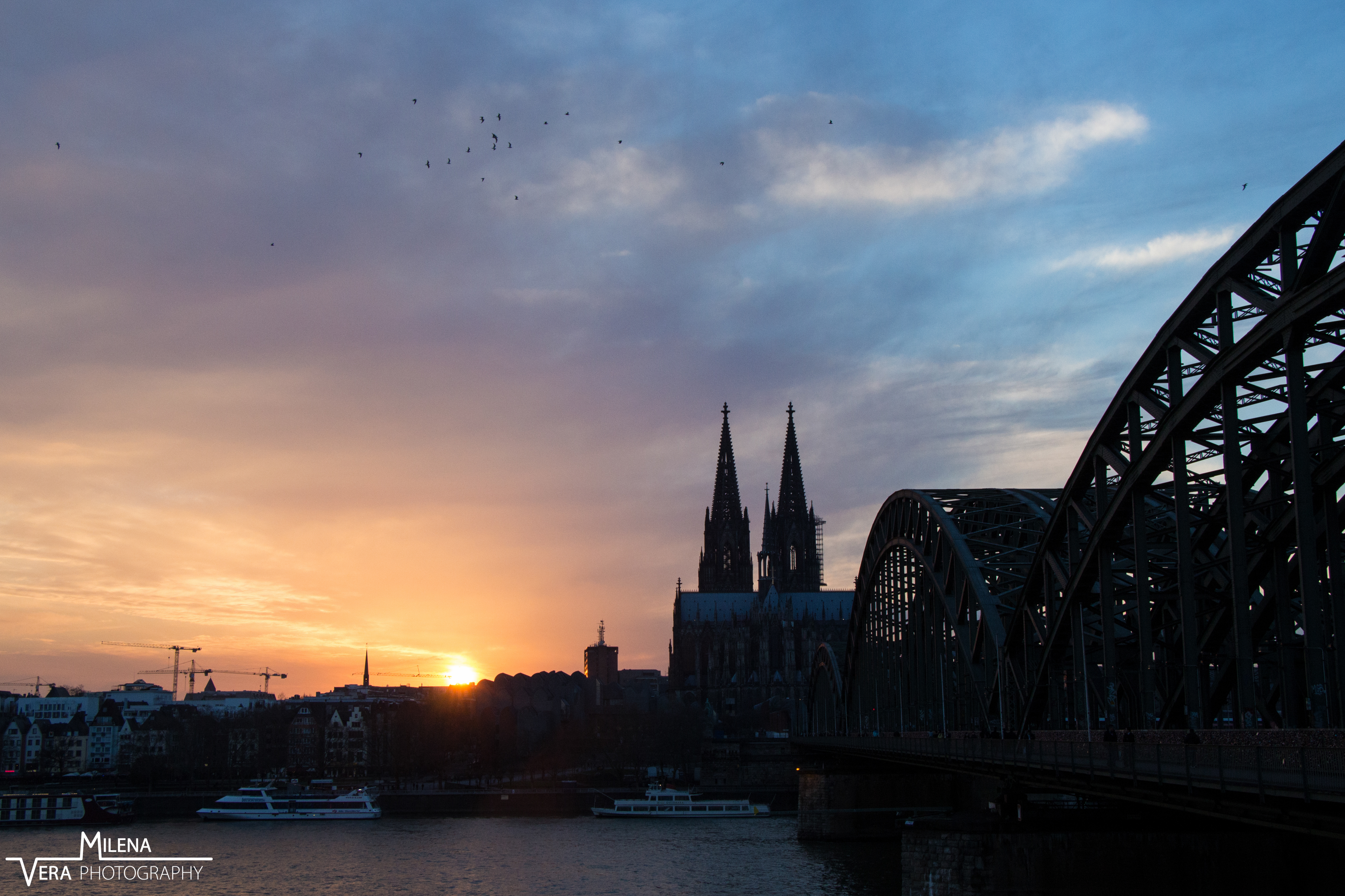 Sunset Rhine and Kölner Dom